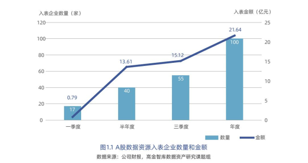 上海交通大学高金智库数据资产研究课题组(以下简称“课题组”)近期发布了《中国企业数据资产入表情况跟踪报告》(以下简称《报告》)。课题组总结:“根据上市公司披露的2024年年度报告,截至2025年4月30日,在A股上市的5000多家企业中,有100家上市公司披露了数据资源入表的相关事项,共涉及入表金额21.64亿元。除A股外,还有22家新三板公司在年报中披露了数据资源入表的相关事项,共涉及金额3.80亿元。”本文将以该《报告》中对上市公司入表情况的调查结果为基础,进行概括性描述和评价,并对企业数据资产入表这项业务提出预期。