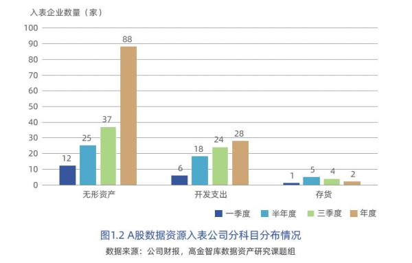 2024年期间,披露数据资产的A股上市公司数量呈大幅增长的趋势,由一季度的17家公司、入表总额0.79亿元增长至年度100家公司,其中增加了不少高市值企业,入表总额达21.64亿元。